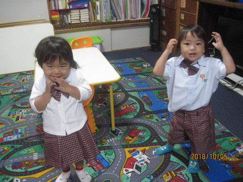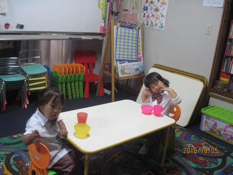 Review colors, touching things around the area, this helps the kids to familiarize the colors. Today we started learning fruits and vegetables, continuing learning the colors with fruits and vegetables.