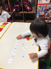 familiarization of numbers and identifying numbers using blocks and flashcards.