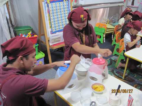 The students went to out and played bowling then bought ice cream after the game before they went back to JEC International School. Then the cooking lesson took place and the student made "Halo-Halo" which is mainly originated in the Philippines as a summer dessert.