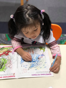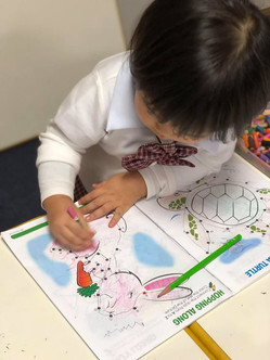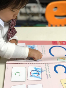 Main Lesson: Lesson for today is about english literature. It is all about familiarizing big and small letters and enhancing their writing ability and pencil control by doing the dot to dot ABC workbook.