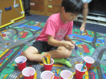 The students did a little bit of crafting related to the small letters of ABC and used what they made for a spelling activity right after they finish. all of the activity was in groups so they can learn how to cooperate and lead a group. After doing the abc activity the students did the color sorting game to practice their colors pronunciation and their motor skills.